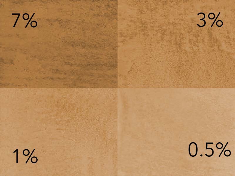 Om de vereiste pigmenten te berekenen, kunt u de tabel gebruiken die bij de instructies staat. Het is het beste om een ​​kleurdeeg te mengen met het bevochtigingsmiddel en water. Klik hier om de instructies voor het mengen van het kleurendeeg te lezen .
